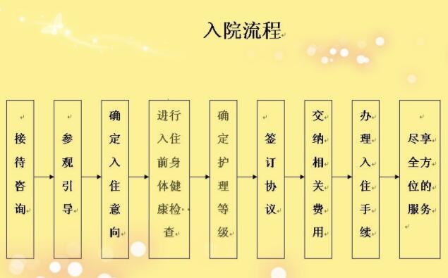 入住 前提供有效体检报告,自查自报,自负责任,利于掌握老人的身体状况,便于饮食及护理。