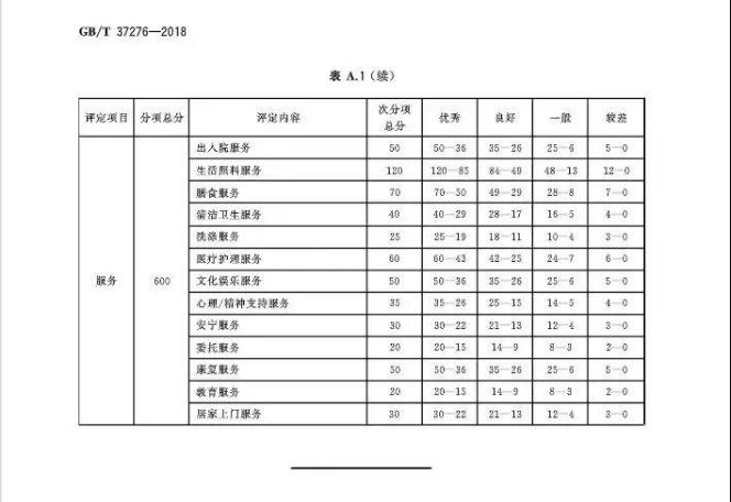 据介绍,《养老机构等级划分与评定》国家标准将于今年7月1日实施,将按照养老机构综合服务能力从低到高划为一星到五星5个等级。此次发布的《实施指南》作为开展养老机构等级评定工作的实操性评价工具,分为环境、设施设备、运营管理和服务4个部分,进一步细化量化养老服务标准,等级评定总分为1000分,其中环境120分,设施设备130分,运营管理150分,服务600分。