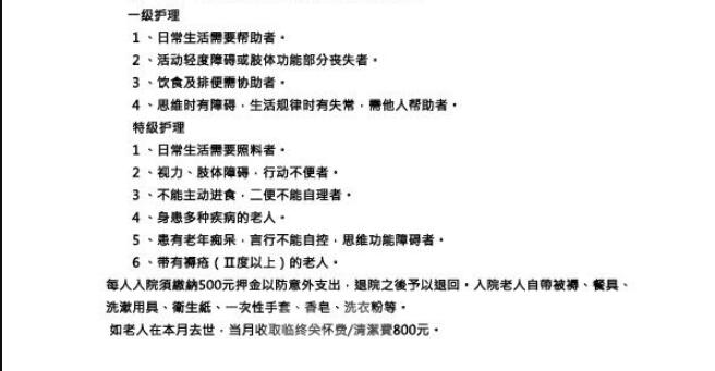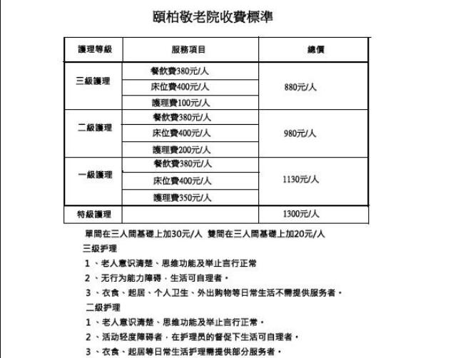 养老院共有单人房、双人房等套房,总计70多个床位。室内所有公寓、活动室、走廊都配有扶手。每个单元配有全套家具及家电、根据老年朋友实际需求特别设计的淋浴室、卫生设施等生活设施。