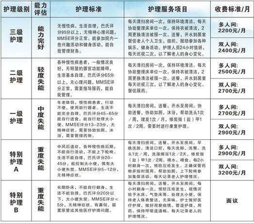 7.收费标准:费用已包含:床位费、护理费、伙食费,三级护理:2200/月,二级护理:2300/月,一级护理:2500/月,特级护理面议。